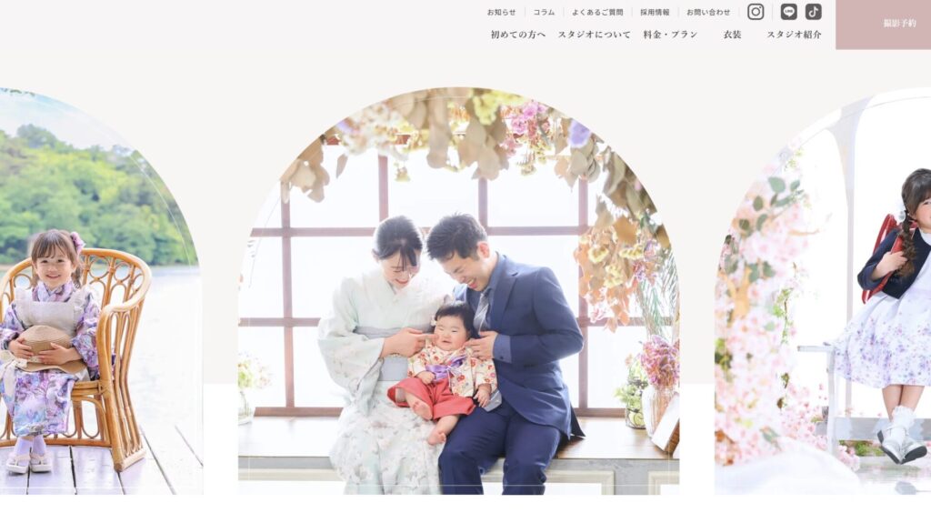- ③ 家族・きょうだい撮影の追加料金: 「主役は1人だが、兄弟ショットも撮りたい」「パパ・ママも一緒に写りたい」という場合、**「追加料金の有無」と「衣装替えの制限」**を確認してください。貸切スタジオでも人数制限がある場合があります。