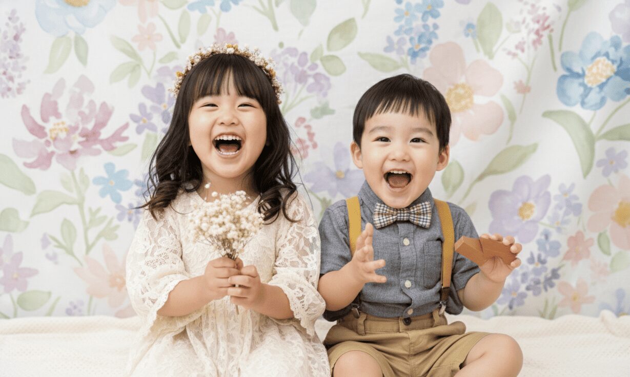 • 衣装と背景のトーンを合わせる:背景がグレージュなら衣装もアイボリーにするなど、色数を絞る「ワントーン・コーデ」が、お子様の表情を最も引き立てます。