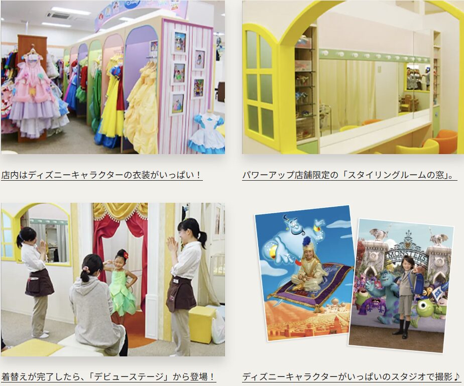 何といっても、500着を超える圧倒的な衣装バリエーションが魅力です。特にディズニーやポケモンとのコラボ衣装はアリスならでは。お子様が「お姫様・王子様」になれる魔法の空間です。