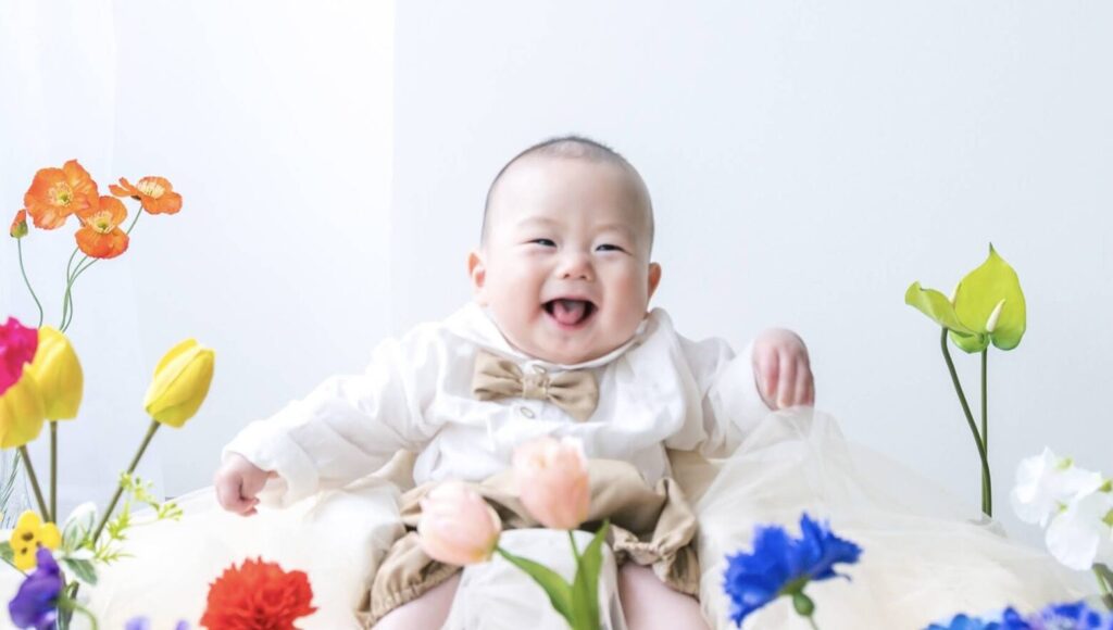 生まれてから半年。首が据わり、寝返りができるようになり、パパやママの顔を見て声を出して笑う。ハーフバースデーは、そんな「赤ちゃんから子供へ」と移り変わる瞬間の、最もピュアな表情を切り取る記念日です。あっという間にハイハイやお座りで動き回るようになる前に、静止した「ねんね」の状態だからこそ撮れる、芸術的な一枚を残しませんか?