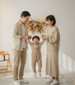 「子供の記念写真、自分たちは適当な格好でいいかな……」と思っていませんか? せっかくプロに撮ってもらうなら、パパもママも主役になって、家族の絆が目に見えるような「リンクコーデ」に挑戦してみましょう。 2026年現在のキッ […]