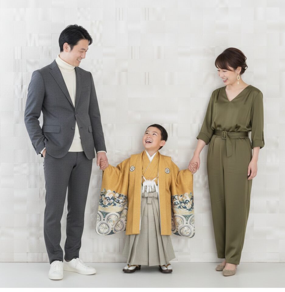 「子供が主役だから何でもいい」と思われがちですが、家族写真では親の服装が写真の「高級感」を左右します。