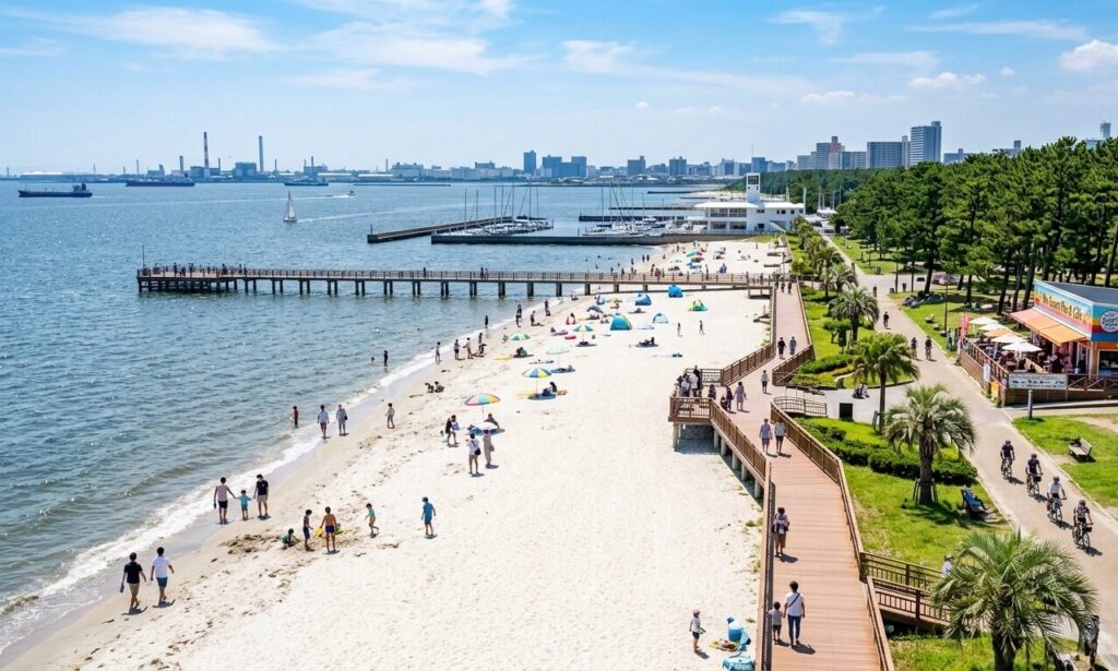 • 魅力: リニューアルされた真っ白な砂浜と、海に突き出たウッドデッキが人気。船橋から車で20分で、リゾートのような非日常感が手に入ります。