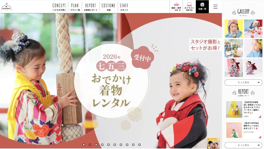 特徴・強み衣装数が桁違い。お参り用着物レンタルの仕組みが洗練されており、撮影と別日にレンタルすることも可能。