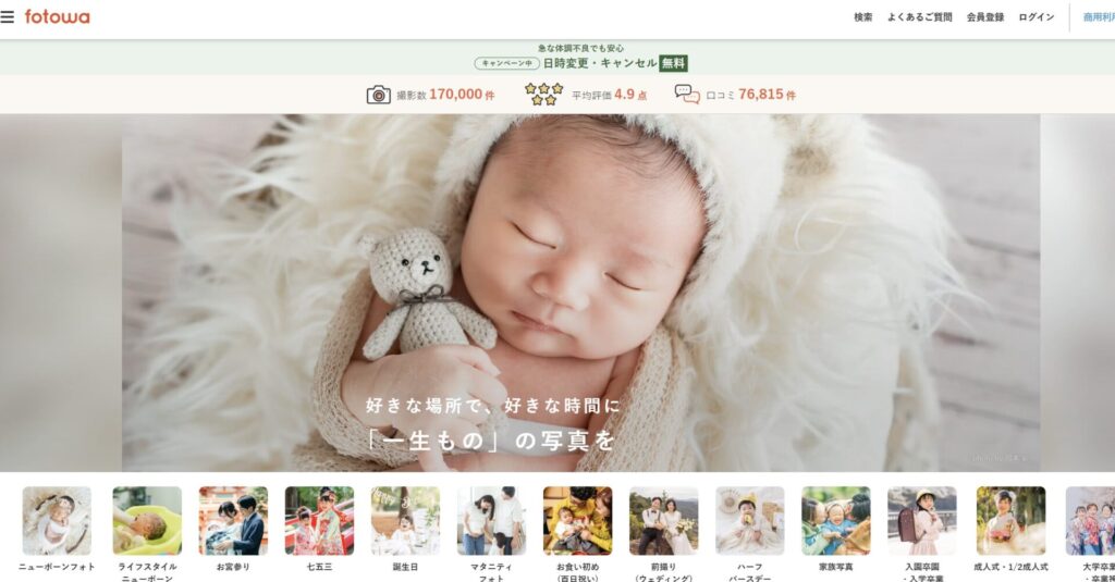 • プランの特徴:データ納品が基本プランに含まれており、「当日中にスマホで写真が見られる」スピード感が現代のパパママに支持されています。