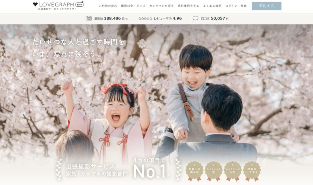 主なサービスFotowaLovegraph等の出張カメラマン