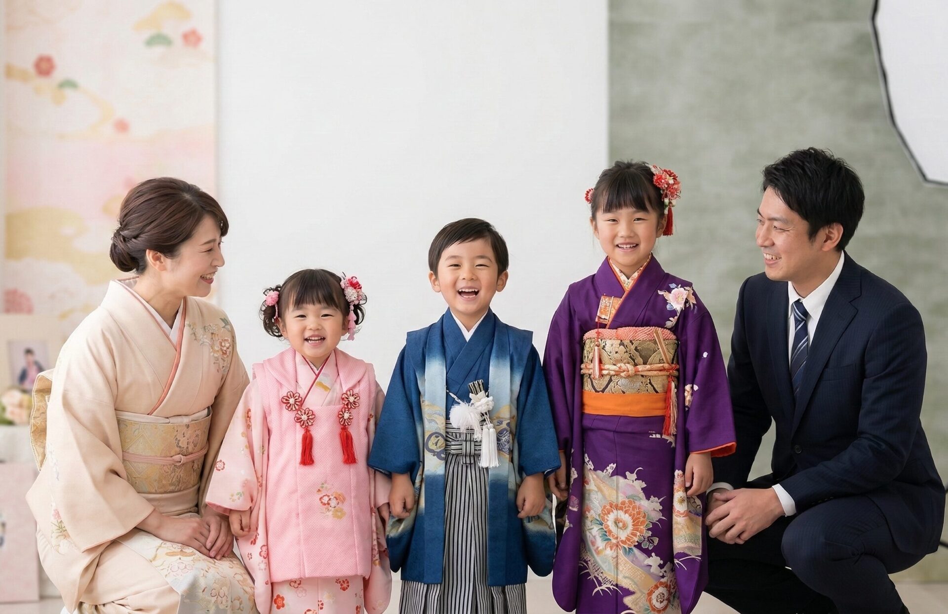 - メリット: スタジオ撮影の予約が一度で済む。両親や祖父母の着付け・移動の負担が減る。家族全員の着物姿が揃い、写真が豪華になる。