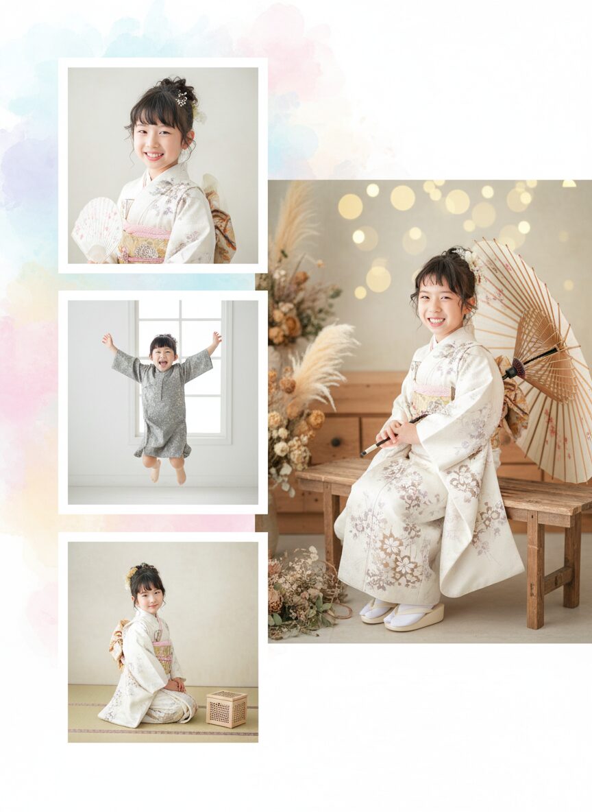 - 注意点: 3歳児は着慣れない着物で泣いてしまうことも。事前に着物の写真を見せて「かっこいい・可愛い」とポジティブなイメージを植え付けておきましょう。