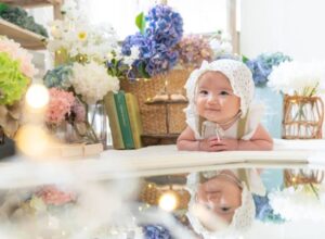 お宮参り(生後1ヶ月頃)の子供フォトスタジオ